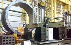 主要用于大型筒形內壁堆焊的自動焊接設備。通過焊接操作機橫臂的伸縮與滾輪架(選購)等周邊設備配合,實現工件的環縫內壁堆焊焊接;設備配置兩套帶極堆焊系統,焊接效率倍增。
